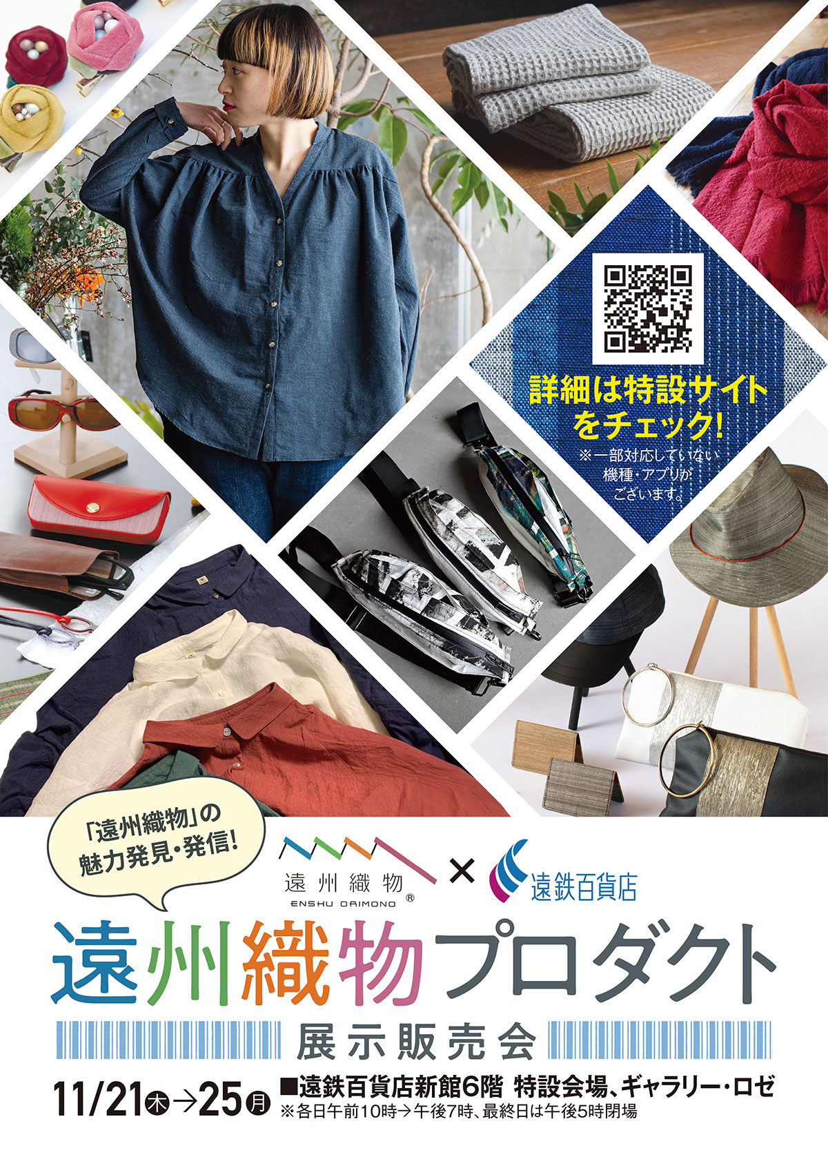 2024年11月21日(木)~25日(月)に、遠鉄百貨店・新館6階で開催される「遠州織物プロダクト」に出展いたします。
